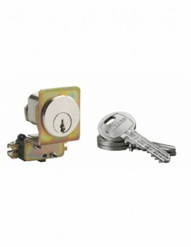 Contacteur à commande par clé. Corps laiton. Mécanisme à goupilles. Inverseur à 4 bornes. Minirupteur avec connexions vissées montage possible sur organigramme. 3 clés en acier nickelé.