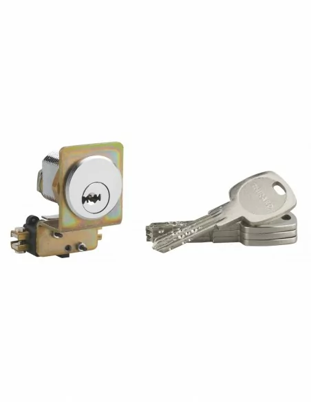 Contacteur à commande par clé. Corps laiton. Mécanisme à goupilles. Inverseur à 4 bornes. Minirupteur avec connexions vissées montage possible sur organigramme. 3 clés en acier nickelé.