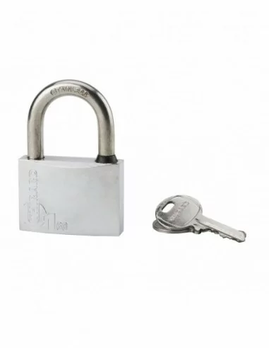 Corps acier monobloc. Blindage acier cémenté et protection contre le perçage. Anse acier chromé. Mécanisme à goupilles. Le cadenas doit être fermé pour reprendre la clé. 3 clés acier nickelé.