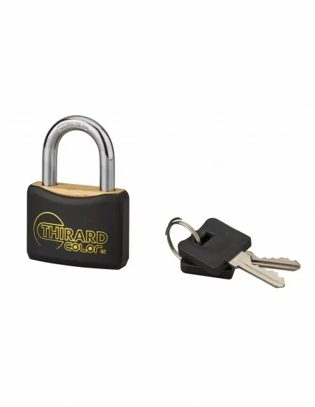 Corps laiton monobloc. Anse acier cémenté nickelé. Mécanisme à goupilles, protection contre le perçage et le crochetage par 2 goupilles en acier traité. Protecteur d'anse. Double verrouillage par billes. Bloc de sûreté interchangeable. 2 clés.