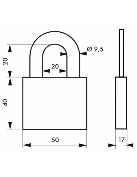 Corps laiton monobloc. Anse acier cémenté nickelé interchangeable. Mécanisme à goupilles, protection contre le perçage et le crochetage par 2 goupilles en acier traité. Double verrouillage par billes. Bloc de sûreté interchangeable. 2 clés.