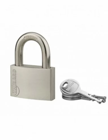 Cadenas à clé Cadenas à clé TYPE 1 - 45 mmTHIRARD00080045 En stock À partir de 15,21 € Corps laiton monobloc. Anse acier cémenté nickelé. Mécanisme à goupilles. Double ancrage. 2 clés acier nickelé.