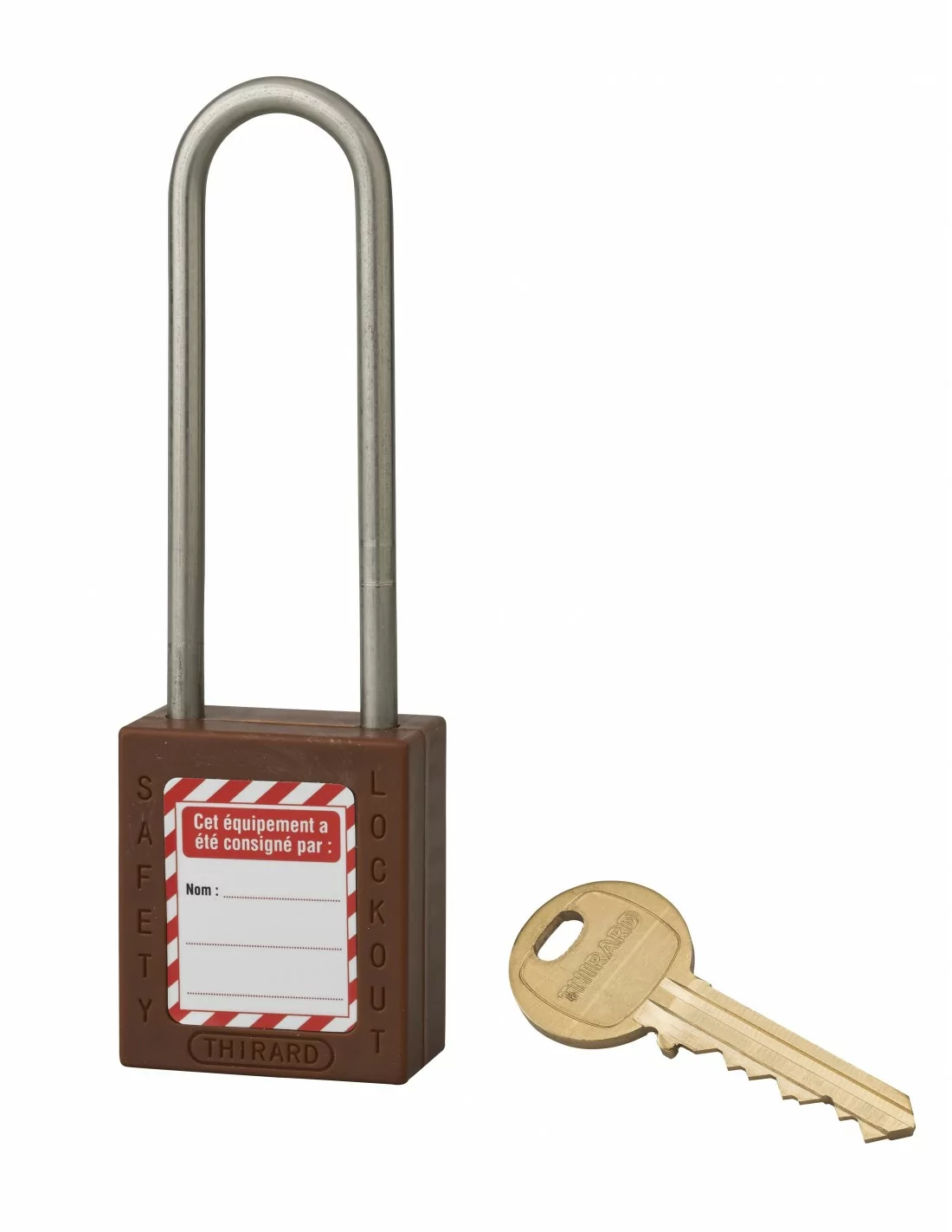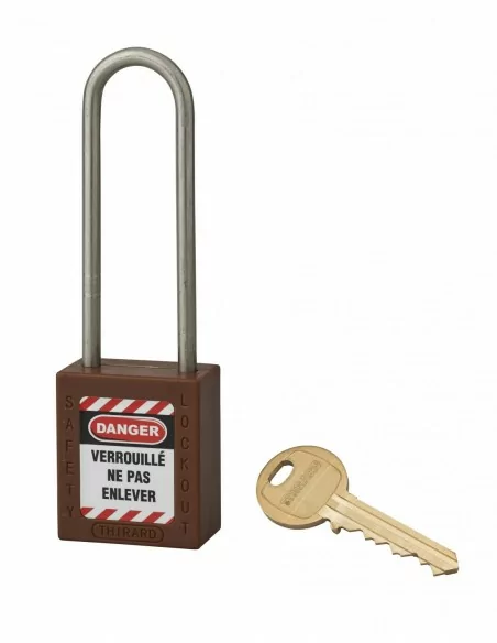 Cadenas de consignation LOTO Lockout Tagout 38 mm anse haute inox Ø 4,76 marron - THIRARD