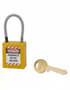 Particulièrement conçu pour les installations électriques, ce cadenas de consignation à câble est idéal lors des opérations de maintenance ou de réparation. Composé d'un corps non conducteur et d'un câble en inox gainé, ce cadenas est non conducteur et résistant aux chocs, à la chaleur et à la corrosion. Son câble est flexible pour permettre la condamnation simultanée de plusieurs appareils. Ce cadenas de consignation électrique est fourni avec une clé et son jeu d'étiquettes d'instruction. Il est garanti 10 ans et disponible dans plusieurs dimensions, versions et couleurs. Ce modèle est compatible avec la mise sur passe.