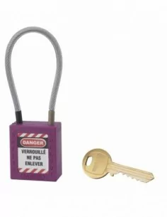 Caractéristiques clés : Corps ABS non conducteur Anse acier trempé Mécanisme à goupilles Double ancrage Clé « prisonnière » : le cadenas doit être fermé pour reprendre la clé 1 clé Livré avec un jeu d’étiquettesCadenas MV : tous les cadenas de même variure (A1, A2, etc ) s'entrouvrent