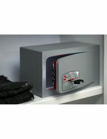 Destiné à être emmuré ou posé, ce coffre-fort à clé dispose d’un verrouillage à trois pênes ronds. Il est également composé d’une serrure de sécurité à double panneton asymétrique à 6 gorges pour éviter les crochetages. Son système de clé prisonnière évite les oublis et les vols tant que la porte est ouverte. Ce coffre est équipé de pattes d’ancrage et fourni avec ses accessoires pour l’installation au mur ou dans un meuble. Garanti 10 ans, le coffre-fort Pierrefonds en finition grise est fourni avec ses deux clés.