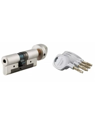 Cylindre de haute sureté à profil européen en laiton, ce modèle est doté d’un panneton anti-arrachement. Son mécanisme très performant offre une protection contre le crochetage grâce à la combinaison de sa pompe radiale et de ses 5 pompes axiales à faux-crans. Ce cylindre breveté est également doté d’une poutre en acier le protégeant de la casse. Le cylindre Cobra 2 de la marque Thirard est fourni avec ses 3 clés ergonomiques brevetées reproductibles en usine avec la carte de propriété pour éviter toute demande frauduleuse. Ce modèle est disponible en demi-cylindre, en cylindre à double entrée de plusieurs dimensions ou en cylindre 1 entrée à bouton. Il est peut être complété avec une batteuse ou un barillet à contacteur pour automatiser le déverrouillage de la serrure