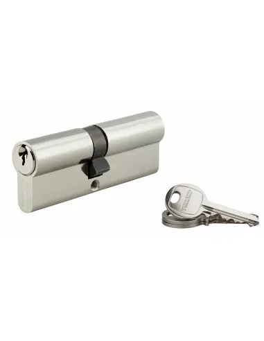 Profil européen laiton. Mécanisme à 6 goupilles protection contre le crochetage. Protection contre le perçage par 1ère goupille + poussoir en acier trempé. Protection contre l'effraction de la partie saillante du cylindre (anti-snap). Panneton anti arrachement. 5 clés plates réversibles laiton nickelé avec carte personnelle.