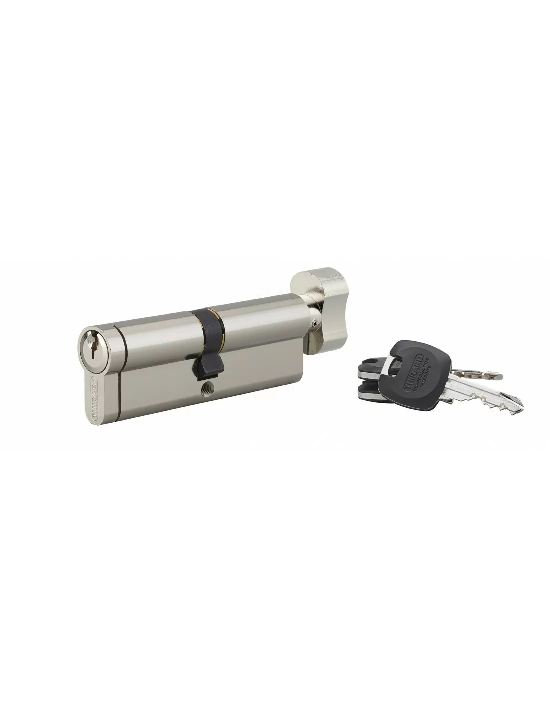 Profil européen laiton. Mécanisme de 6 à 22 goupilles maillechort sur 5 rangées. Protection contre le perçage par 1ère goupille + poussoir en acier trempé.Panneton anti arrachement. 3 clés plates maillechort avec insert ABS avec carte de propriété permettant la reproduction des clés. exclusivement en usine. Pièce mobile anti-crochetage interne au cylindre...