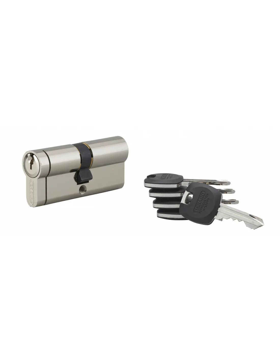 Profil européen laiton Mécanisme à 5 goupilles Protection contre le perçage par 1ère goupille + poussoir en acier trempé Protection contre leffraction de la partie saillante du cylindre (anti-snap) Panneton anti arrachement 3 clés plates avec carte de propriété permettant la reproduction des clés Pièce mobile anti-crochetage interne au cylindre...