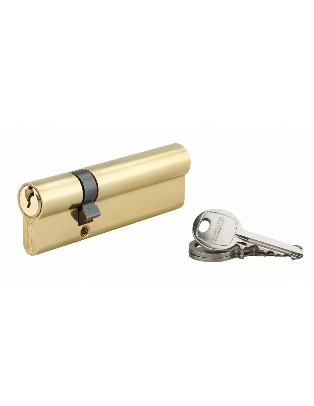 Cylindre à profil européen en laiton, ce modèle offre une protection contre l’intrusion grâce à son mécanisme à 5 goupilles et à son panneton anti-arrachement. Il est particulièrement conçu pour équiper les serrures de porte d’entrée. Ses trois clés en acier nickelé sont fournies avec ce cylindre de la marque Thirard et vous permettent de partager votre accès. Garanti 2 ans, ce modèle est disponible en demi-cylindre de 30 x 10mm et en cylindre à double entrée ou à bouton de plusieurs dimensions allant de 20 x 20mm à 40 x 50mm.