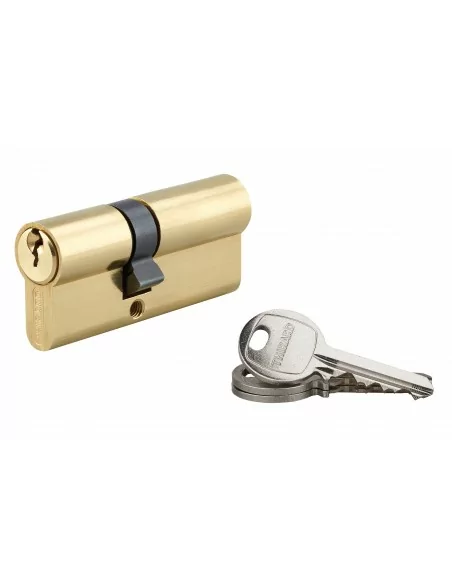 Profil européen laiton. Mécanisme à 5 goupilles. Panneton anti arrachement. 3 clés en acier nickelé.