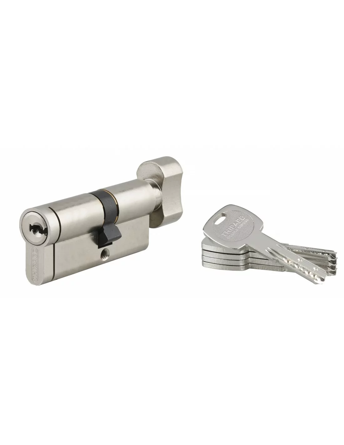 Fabriqué en laiton, ce cylindre de haute sûreté breveté est particulièrement conçu pour équiper les portes d’entrée. Son mécanisme à 8 goupilles offre une protection optimale contre le crochetage. Composé d’un ensemble en acier trempé - aiguille, première goupille et système de poussoir – ce cylindre est totalement protégé contre le perçage. Enfin, il est également protégé contre les tentatives d’arrachement. Doté d’un profil européen, ce cylindre de serrure de la marque Thirard peut être installé sur la majorité des serrures. Il est livré avec ses 4 clés plates réversibles en laiton nickelé et leur carte de propriété. Garanti 10 ans, ce modèle est disponible en demi-cylindre, en cylindre à double entrée ou à bouton de plusieurs dimensions. Ce cylindre peut être monté en organigramme sur demande.