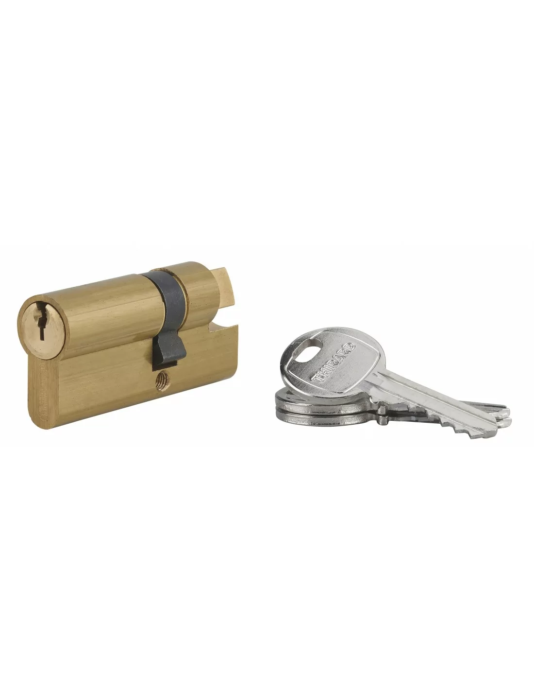 Profil européen. Mécanisme à 5 goupilles en maillechort. Panneton anti arrachement. 3 clés en acier nickelé (laiton pour organigramme).