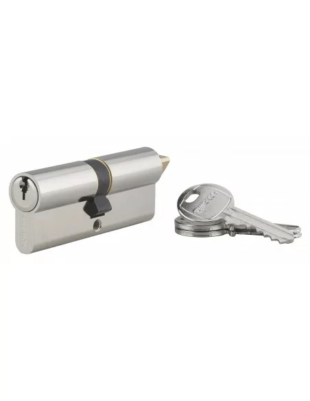 Profil européen. Mécanisme à 5 goupilles en maillechort. Panneton anti arrachement. 3 clés en acier nickelé (laiton pour organigramme).