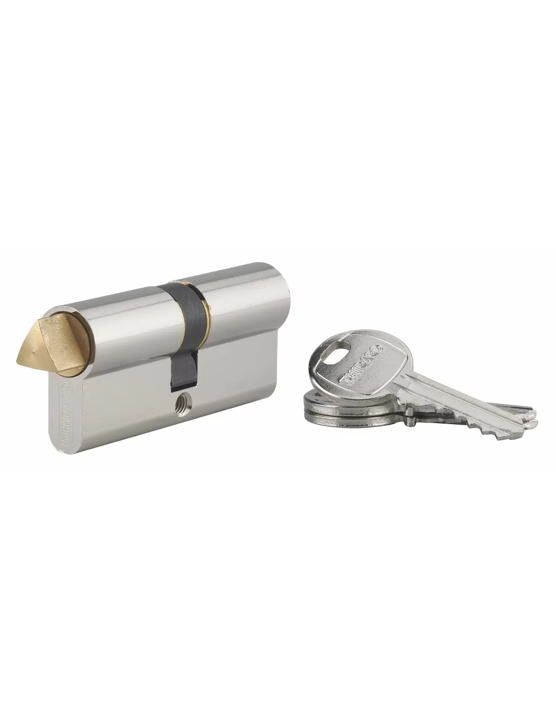 Profil européen. Mécanisme à 5 goupilles en maillechort. Panneton anti arrachement. 3 clés en acier nickelé (laiton pour organigramme).