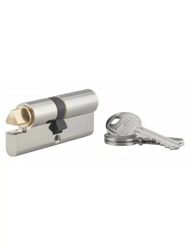 Profil européen. Mécanisme à 5 goupilles en maillechort. Panneton anti arrachement. 3 clés en acier nickelé (laiton pour organigramme).