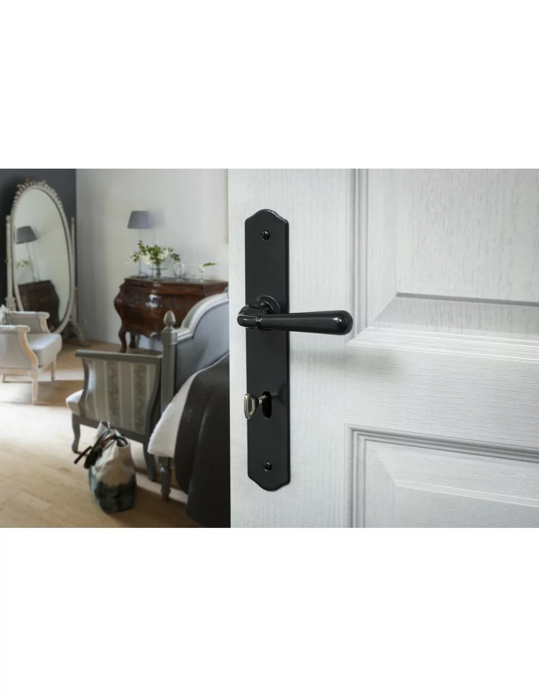 Poignée de porte Picardie trou de cylindre, i palère carré 7 mm