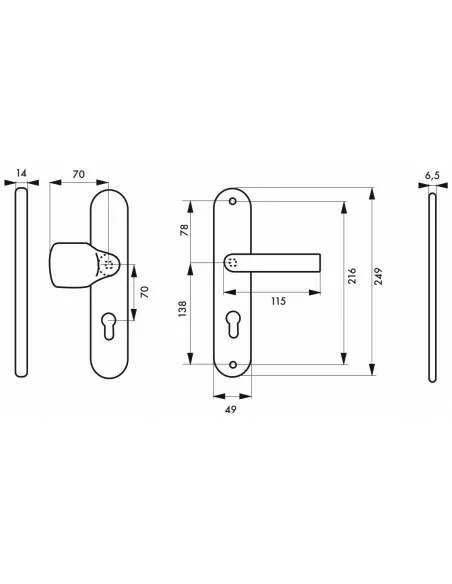 Ensemble de poignées pour porte intérieure louis XV trou de clé, carré 7mm, entr'axes 195mm, laiton vieilli - THIRARD