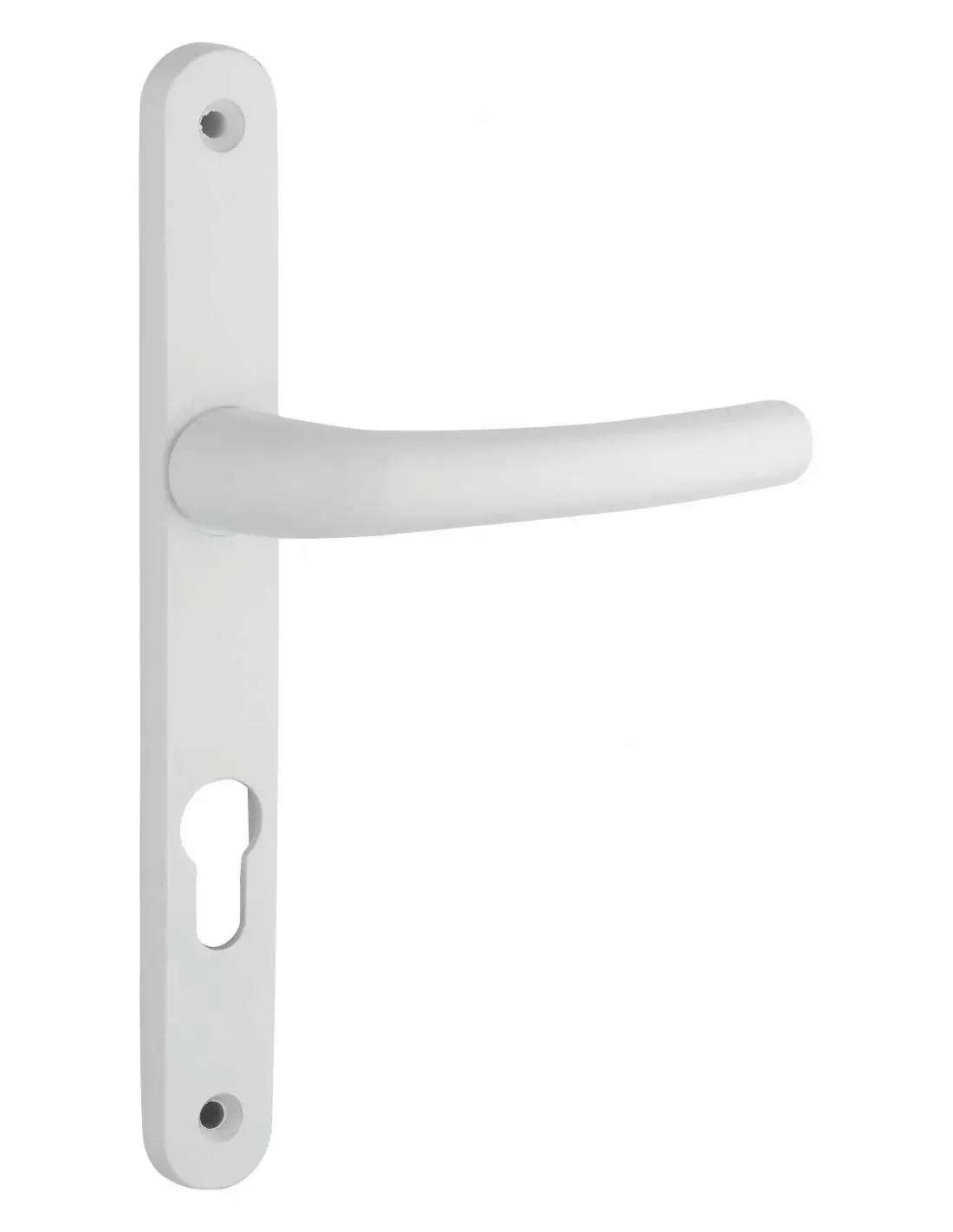 Plaques aluminium fondu. Béquilles aluminium fondu. carré acier 7 mm. Vis métaux. Pour porte épaisseur 45 mm maxi. Entr'axe de fixation 195 mm.