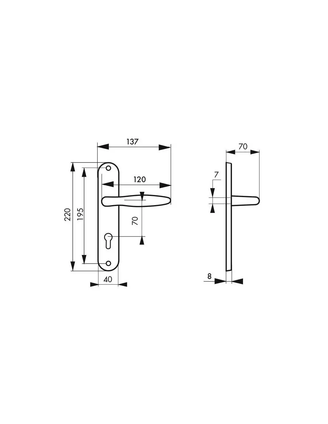 Plaques acier embouti. Béquilles alliage fondu. Carré acier 7 mm. Vis métaux . Entr'axe de fixation 195 mm.