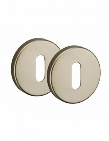 Béquilles aluminium fondu. Carré acier 7 mm. Fixation invisible par vis métaux. Pour porte épaisseur 45 mm maxi. Rosace avec trou de cylindre européen aluminium embouti