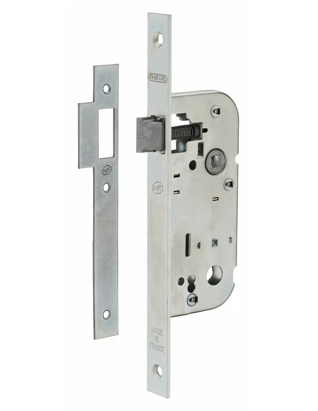 Encastrable pour une grande discrétion, ce coffre de serrure en acier est conçu pour les portes intérieures. Cette serrure à bec de cane est facile d’installation grâce à son demi-tour réversible sans démonter le coffre permettant de l’utiliser pour une ouverture à gauche ou à droite. Cette serrure encastrable est fournie avec sa gâche plate en acier et est disponible avec têtière arrondie ou carrée, en finition époxy noir ou zinguée. Ce coffre de serrure à encastrer de la marque Beaurain est certifié NF de niveau 1 et garanti 10 ans.