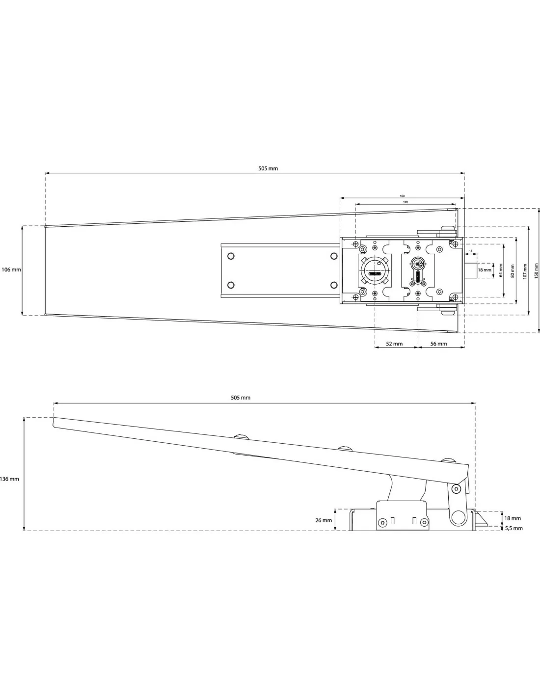 Structure, dimensions et performances conformes à la nouvelle norme européenne CE NF EN1125. Pêne acier zingué. Boîtier acier laqué. Barre aluminium longueur 1,15 m, recoupable. Réversible. Pour porte hauteur maxi 2635 mm. Accessoires : béquille ou bouton de manoeuvre extérieure , 1/2 cylindre profilé 30 x 10 mm.