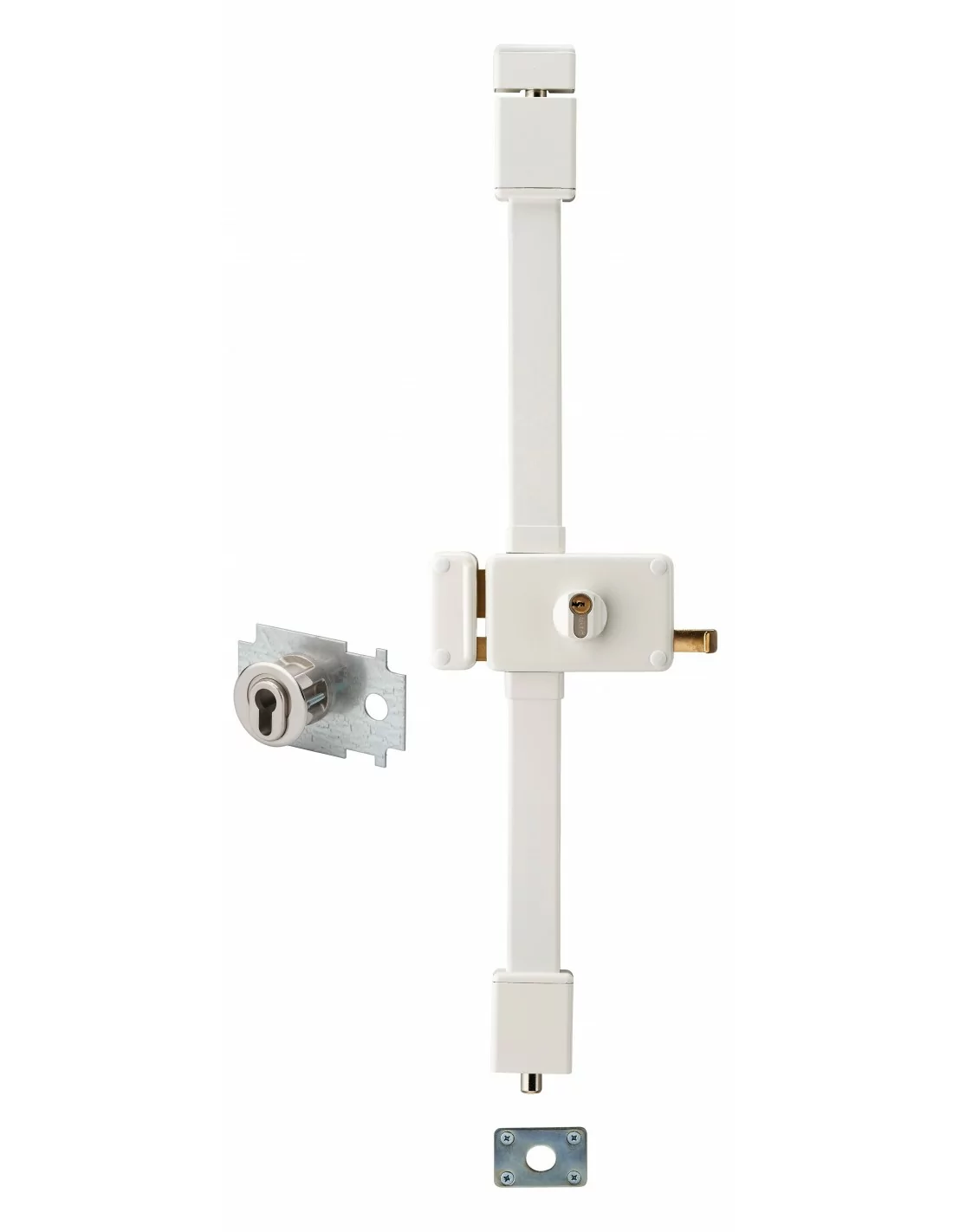 Fabriquée en acier 20/10ème, cette serrure multipoint à appliquer offre une sécurité optimale par ses 3 points de condamnation ajustables de 1,65m à 2,25m. Efficace pour sécuriser les portes d’entrée, la serrure Horga est protégée contre le sciage, et son cylindre contre l’arrachement, le perçage et le crochetage. Fournie avec ses gâches, ses caches-tringles, ses guides et son cylindre profilé, cette serrure de la marque Thirard est simple d’installation et ne nécessite pas d’entaillage de la porte. Le cylindre Transit 2 est composé d’un mécanisme à 8 goupilles et est fourni avec ses 4 clés plates réversibles et sa carte de propriété. Cette serrure 3 points en applique est disponible en version droite et gauche, à fouillot et à tirage, marron ou blanche. Elle est garantie 10 ans et certifiée A2P*, pour une résistance aux tentatives d’infraction de 5 minutes et une reconnaissance auprès des assurances.