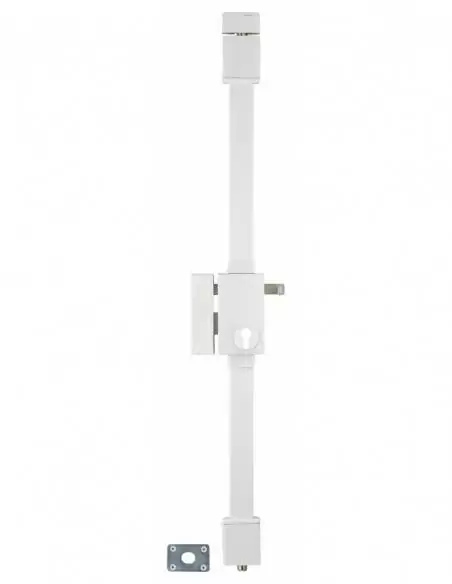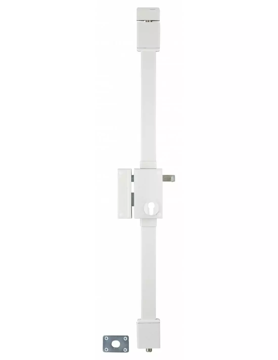 Boîtier en acier cambré épaisseur 20/10ème. Coffre cambré 75 x 130 mm axe à 45 mm. Jeu de tringles pour une hauteur maximum de porte de 2,25 m. Mécanisme intérieur type équerre permettant la manoeuvre du 1/2 tour de l'intérieur comme de l'extérieur avec la clé. Pêne et 1/2 tour en acier zingué. Pênes haut et bas en acier zingué. gâche avec têtère de haute résistance. Enjoliveur de cylindre côté intérieur. Carré 7 mm - Poignée double anodisé champagne ou laqué blanc selon modèle fournie pour serrure à fouillot. Le montage de la serrure ne nécessite pas d'entaillage spécifique de la porte.Options : Kit de tringles pour une hauteur maximum de porte de 3 ?m. Points de verrouillage complémentaires.Cylindre profilé SACylindre à profil européen normalisé en laiton. 30x65 mm pour porte de 45 mm maxi. Mécanisme à 5 goupilles. Panneton en acier fritté anti-arrachement. 4 clés laiton nickelé.