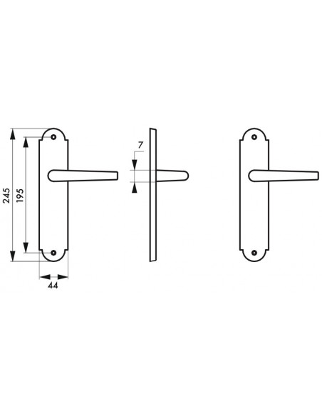 Plaques acier embouti. Béquilles alliage fondu. carré acier 7 mm. Vis métaux sécables. Entr'axe de fixation 195 mm.