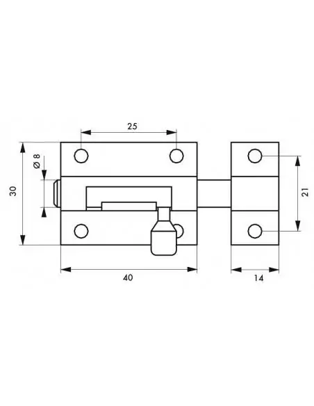 Verrou pour porte de meuble Verrou pour porte de meuble targette nickelée 25 mmTHIRARD00900627 En rupture de stock À partir de 7,18 € Platine acier embouti. gâche acier embouti. Bouton poire. Pêne rond coulissant. View