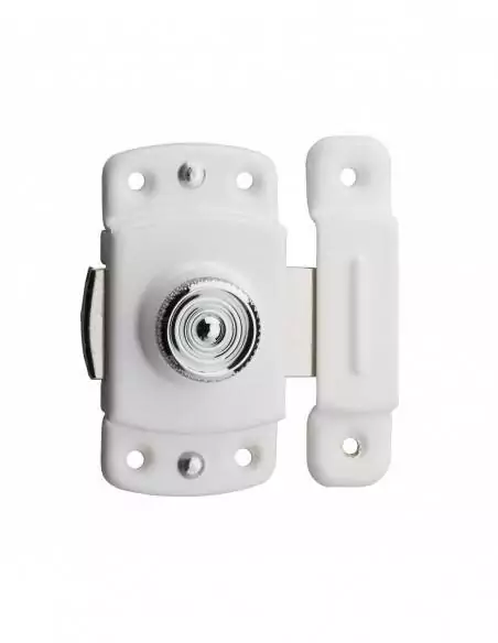 Verrou pour porte de meuble Verrou pour porte de meuble 30 mm laqué blanc00900929 En stock À partir de 7,69 € Coffre laiton embouti chromé. gâche laiton embouti chromé. Bouton laiton molleté. Pêne acier chromé.