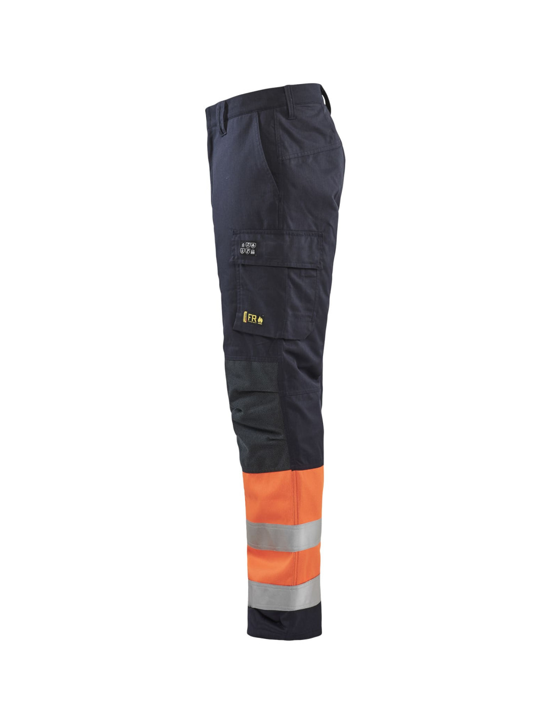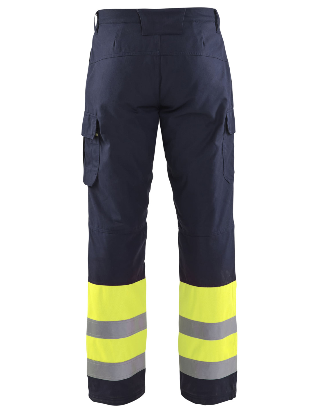 Pantalon d'hiver souple, doublé multinormes dans un tissu imperméable et anti-saleté. Poches chauffe-mains à l'avant et deux poches à soufflet pour stylos avec de la place pour des papiers, des stylos et un téléphone. La poche cuisse droite est inclinée pour un meilleur confort en position assise et pour permettre un accès facile. Le pantalon a des genoux pré-formés pour plus de confort. Certifié selon les normes ;EN 1149-5, ;EN 342, ;EN 13034 PB [6]. EN ISO 20471, Classe 1. EN ISO 11611, Classe 1 A1. EN ISO 11612 A1, B1, C1, E1, F1. IEC 61482-2, Classe 2. 40% modacrylique, 24% viscose retardant flamme, 20% polyester, 10% coton, 4% Aramide, 2% Antistatique, double tissage, retardant flamme, antistatique, 310 g/m² - Bleu, Orange fluo. Multinormes. Homme. unisexe. 38-58, 40L-52L, 42C-56C.